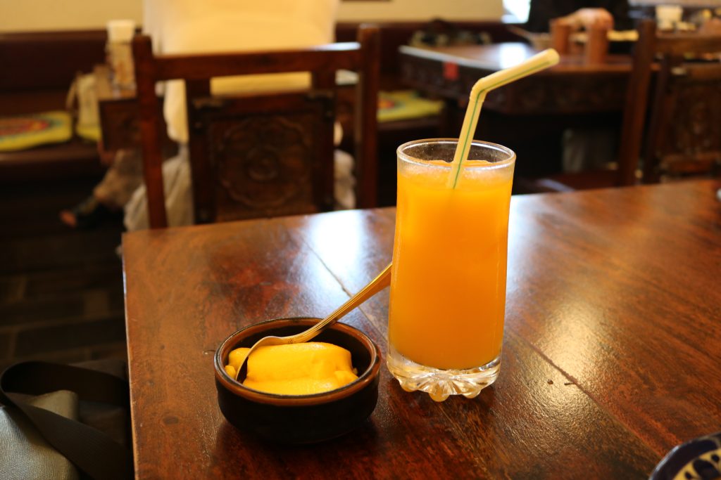 また、当時の日本ではインドに対して、バックパッカーや混沌というイメージがあったが、インド産の紅茶や当時はまだ日本で親しまれていなかったマンゴーなど優れた品々の認知を広げようと輸入卸事業も始めた。実際に自らの舌で味わい、現地で自らの目で確かめることにこだわった品々だ。取材当日、インドから輸入しているマンゴージュースをご厚意で頂いたがその濃厚さは目を見張るものがあった。
