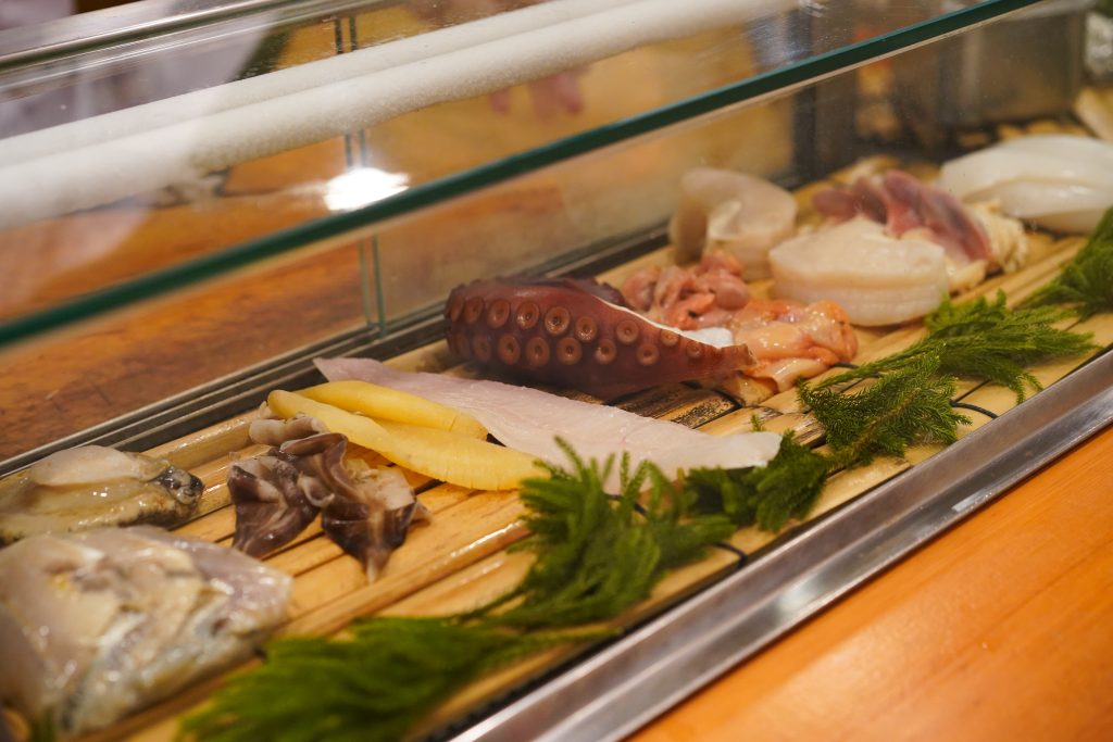 お店は本家も合わせて創業150年以上にのぼるという。「二葉鮨は銀座に本家があって、祖母の実家なんです。本家は江戸時代から繋がっていて、僕は血筋でいうと六代目くらいになります。最近の流行りの寿司屋はコースで値段も高いところが多いと思うんですけど、うちはお客さんが食べたいものを好きなだけ食べてもらう古典的な寿司屋の形を守っているかな。」と久保山さん。お店は屋台から始まったそうで、寿司ネタの調理も代々受け継いだ方法で行っている。