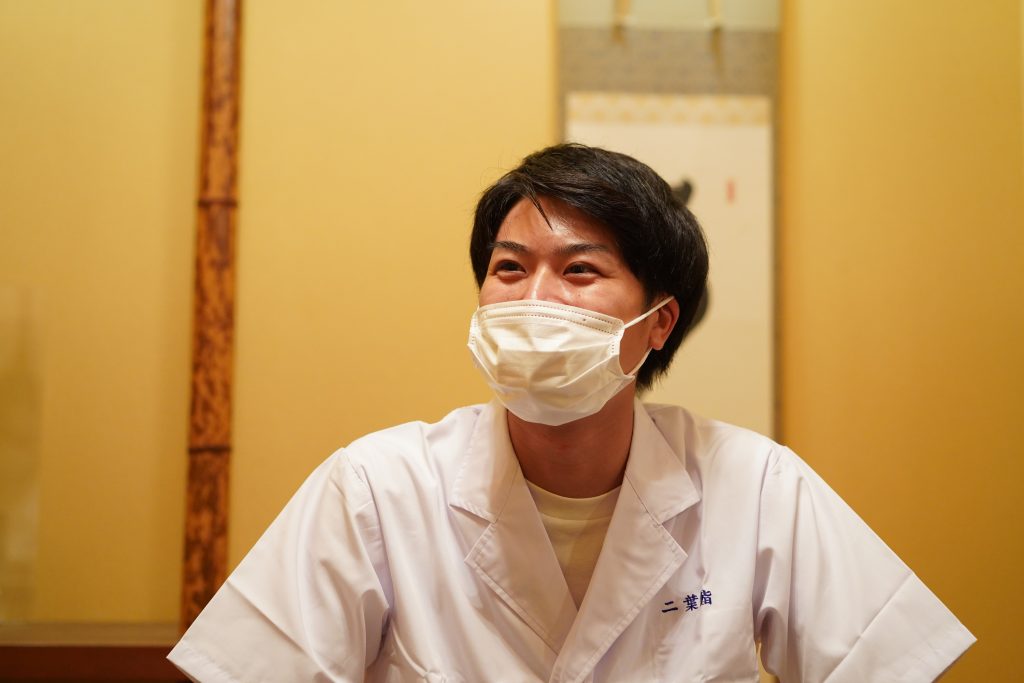 「二葉鮨」を訪れるお客さんの多くは常連の方だそうで、大体の好みは頭の中に入っているという。祖父の代から来店してくれているお客さんも多い。お店だけでなく、来てくれるお客さんも代々繋がっていくものであり、大事にしたいという久保山さん。お店のPR活動を行わないのも常連さんを大切にしたいという思いからである。PR活動を行って一時的に多くのお客さんを集めるのではなく、常連さんが寿司を楽しむ場所を守り続けたいという。「僕がお店を継いだらお客さんが一番喜んでくれますからね。」「カウンターで直接お礼を言ってもらえたり、美味しいって言ってもらえたりするのは、この商売ならではかなと思います。」常連さんとの繋がりを大切にする姿勢がインタビューの各所で感じられた。