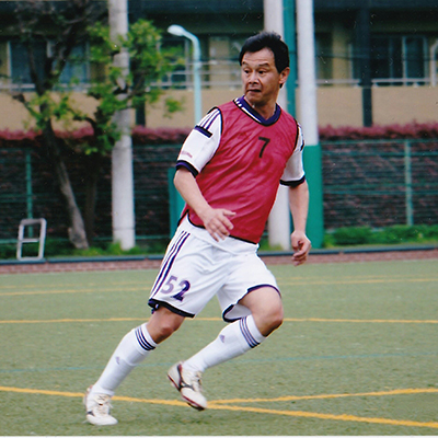 基本的に体を動かすことが好きで、インドアの趣味はほとんど持っていません。小学生で始めたサッカーは今も続けており、約30年ほど小学生チームの指導をしていました。現在は神奈川県シニアリーグで選手としてプレーしています。加えて地域の友達と一緒にやっているソフトボール、そして55歳からはマスターズ陸上(注)での短距離競技を始めました。陸上競技では、同年代のライバルたちと競い合うなかで全国に友人も増え、新しい世界を見ることができています。50代に入ってすぐに体調を崩した経験から、自分の健康・体力の回復を確認し、さらに向上させるために、これらのスポーツそれぞれで昨日の自分を超えることを目標に真剣に取り組んでいます。